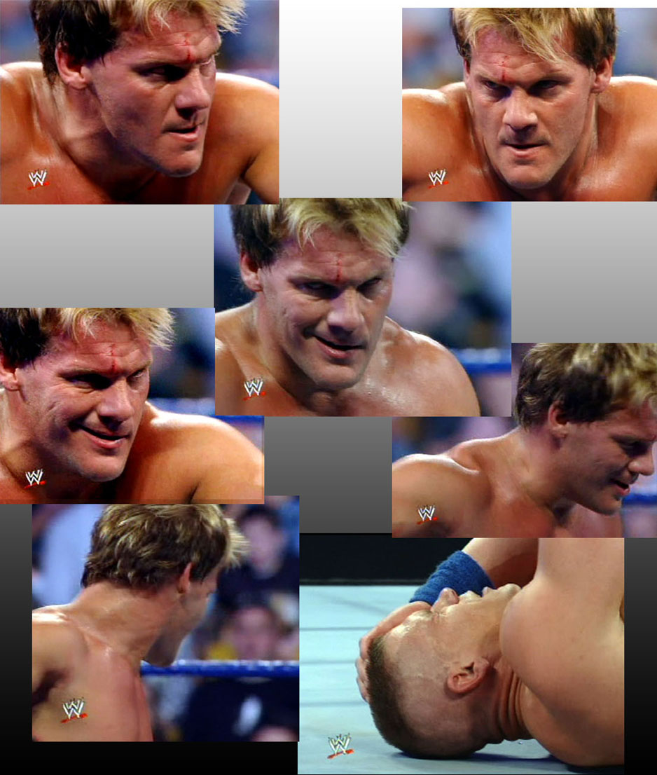 Jericho with a kick and forearm to the back of Cena. Jericho with some big right hands. Jericho with a kick to Cena's head. |