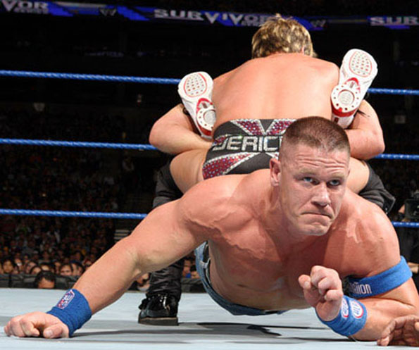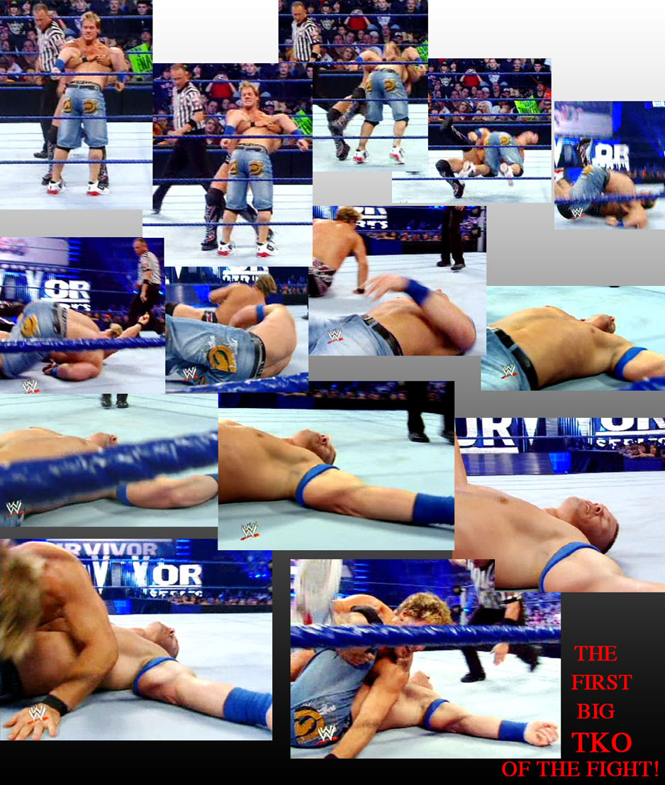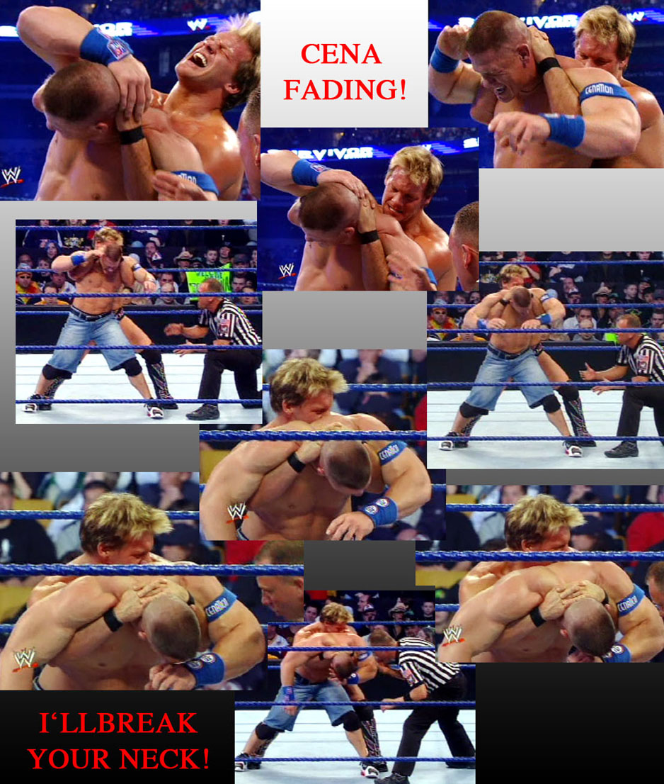 JOHN CENA THE LAW OF THE BACK BROKEN IN THE WALLS OF JERICHO SEEMS TO HAVE DIFFICULTIES TO GET UP AND RESUME THE FIGHT. UNABLE TO MAKE CENA SUBMIT IN HIS KILLER BOSTON CRAB A FRUSTRATED JERICHO IS PREPARING A LAST SUBMISSION HOLD TO DOWN DEFINITIVELY HIS CHALLENGER!
