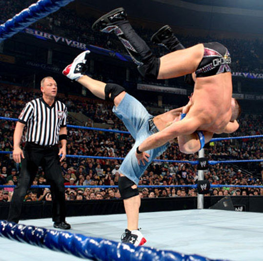 Cena fires back with a huge clothesline on Jericho. Cena with |