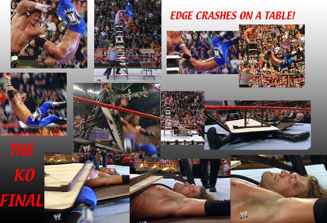 ...Edge tapped out, but it didn't matter since you had to grab the title hanging above the ring...