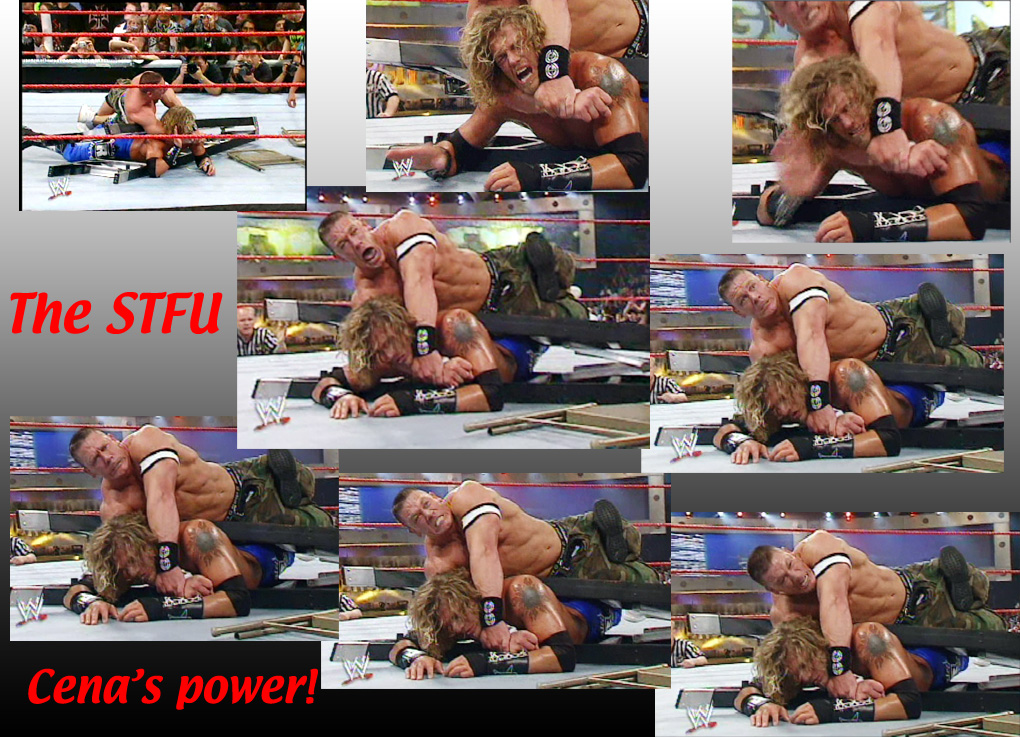 Cena came back, sandwiched the champion inside of one of the ladders slamming it over his body and then applied the STFU while he was stuck in the steel. Edge feverishly tapped out, but with the only way to win being to climb a ladder and retrieve the gold, his voluntary submission was ignored by the referee...