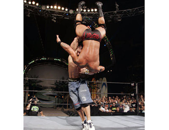 ....Unfortunately for Orton, the Biggest Party of the Summer turned out to be the Biggest Disappointment of the Summer. As he has done so many times in his nearly year-long reign, Cena found a way to defy the odds. He fought through the pain of a stiff neck and lingering dizziness from multiple RKOs to defeat Orton.