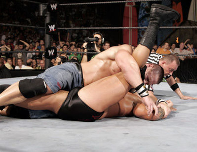 | ...But Cena reached down deep and refused to lose. Just when everybody thought Orton had the win in the palm of his hand, Cena kicked out just before three... | |