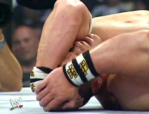 ...BUT John Cena managed to avoid the kick ; then locked Randy Orton in his STFU!... |