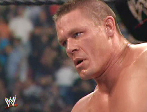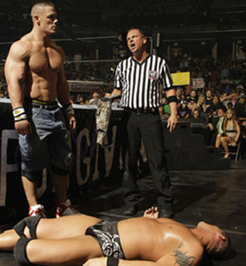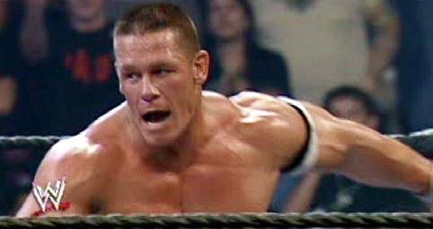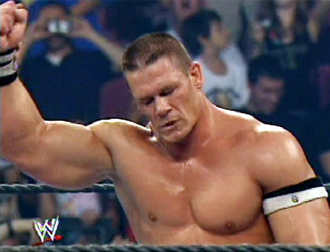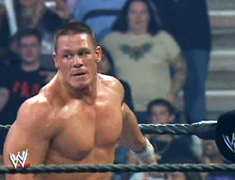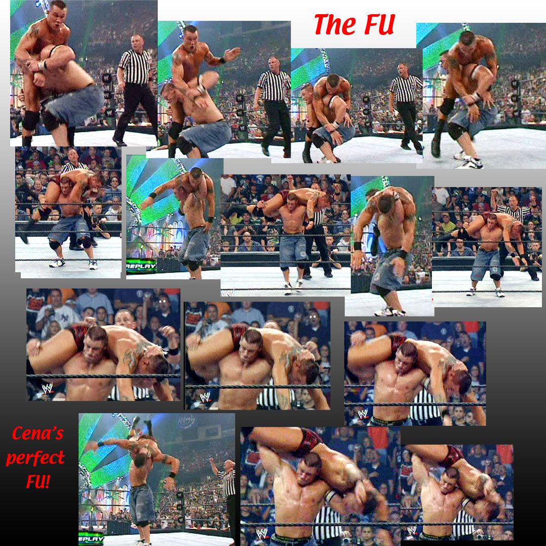 ...John Cena slammed the breath out of Orton with his patented FU... .