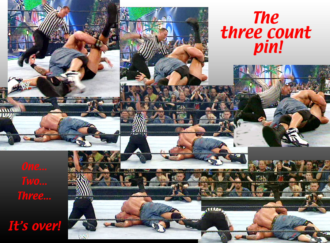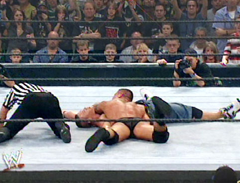 John Cena lying motionless on the mat Randy Orton had just to cover him for the three count!
