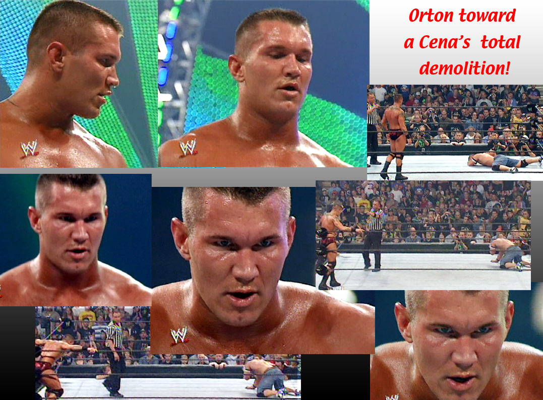 ...At this point, Orton was preparing to punt Cena in the temple and end his career like he did with Shawn Michaels, Rob Van Dam, and many others... |